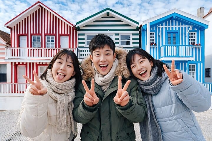 In the afternoon, we head to the Costa Nova, famous for its iconic houses with colorful ribs and the peaceful atmosphere by the sea.